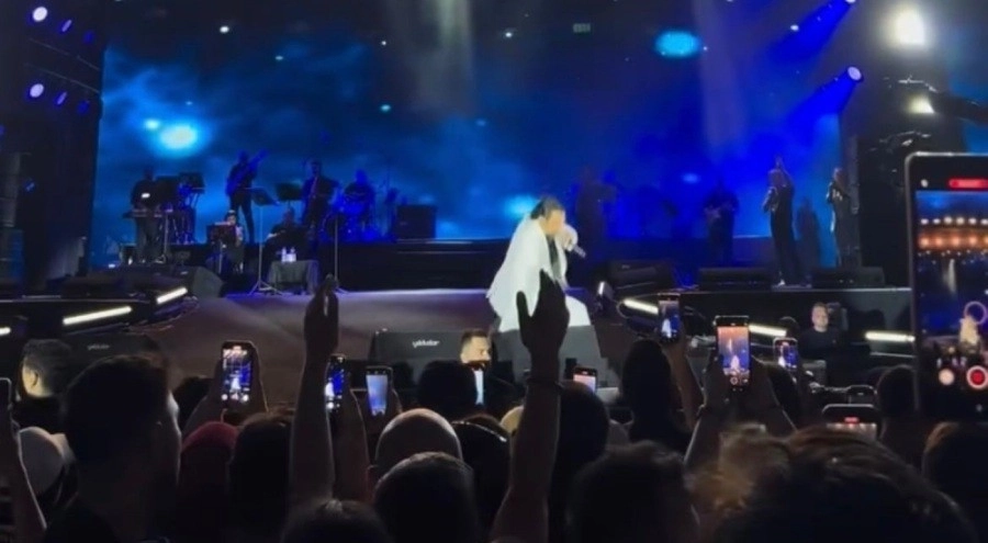 Kısa süreli panik yaşayan seyirciler, sanatçının yeniden ayağa kalkmasıyla rahatladı. Bayhan, yaşadığı kazaya rağmen konserine ara vermeden devam etti.