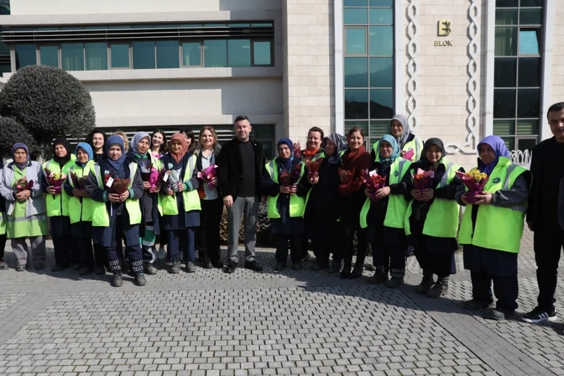 8 Mart Dünya Kadınlar Günü kapsamında hediye edilen çiçeklerde, "Değerli kadınlar, emeğinizle geleceğimize ışık oluyorsunuz. Biz inanıyoruz ki eşitlik birlikte mümkün. Birlikte daha güçlü, daha adil yarınlara..." yazılı bir not da yer a ldı.
