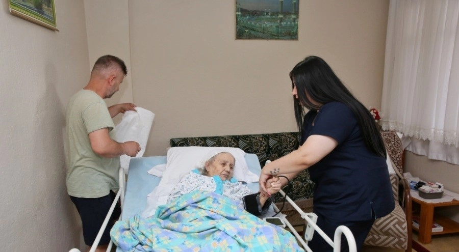 Sağlık İşleri Dairesi Başkanlığı'na bağlı ekipler, Kurban Bayramı boyunca da vatandaşların sağlık ve bakım hizmetlerinden sorunsuz bir şekilde yararlanabilmesi için görevlerini sürdürüyor. 17 ilçede yatağa bağımlı hastalara yönelik nakil hizmetlerini sürdüren ekipler, gelen talepleri titizlikle değerlendirerek 30 mobil araç ve 27 ambulansla vatandaşa hizmet veriyor. Evde bakım hizmetleri kapsamında hemşirelik, psikolog, ebelik, diyetisyen hizmetlerinin yanı sıra temizlik ve bakım destek hizmetleri de sunuluyor. Bursa Büyükşehir Belediye Başkanı Mustafa Bozbey; yaşlı, engelli ve yatağa bağımlı bireylerin bayramı huzur ve sağlık içinde geçirebilmeleri için tüm önlemleri aldıklarını söyledi. Sosyal belediyeciliğin her alanda hissedilmesi için çalışmaları sürdürdüklerini belirten Başkan Bozbey, "Bursalıların her şartta yanında olmaya devam ediyoruz. Güzel günlerinde yanlarında olduğumuz gibi zor ve sıkıntılı zamanlarda da halkımızla omuz omuza veriyoruz. Evde bakım hizmetlerini bu yüzden önemsiyorum. Tüm hastalarımıza acil şifalar diliyorum. Özveriyle çalışan sağlık ekibimize de kolaylıklar diliyorum. Halkımızın Kurban Bayramı kutlu olsun" dedi.