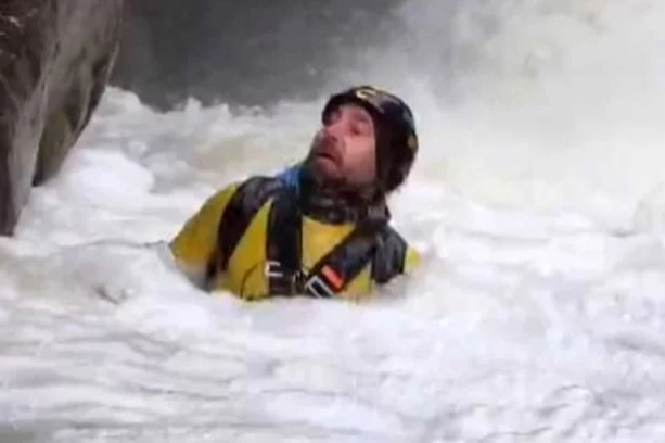 Aksiyon peşinde olan dağcı İbrahim Taşçı, büyük bir gürültüyle akan sudan soğukkanlılığı ve tecrübesi sayesinde tehlikeli bölgeden çıkmayı başardı.