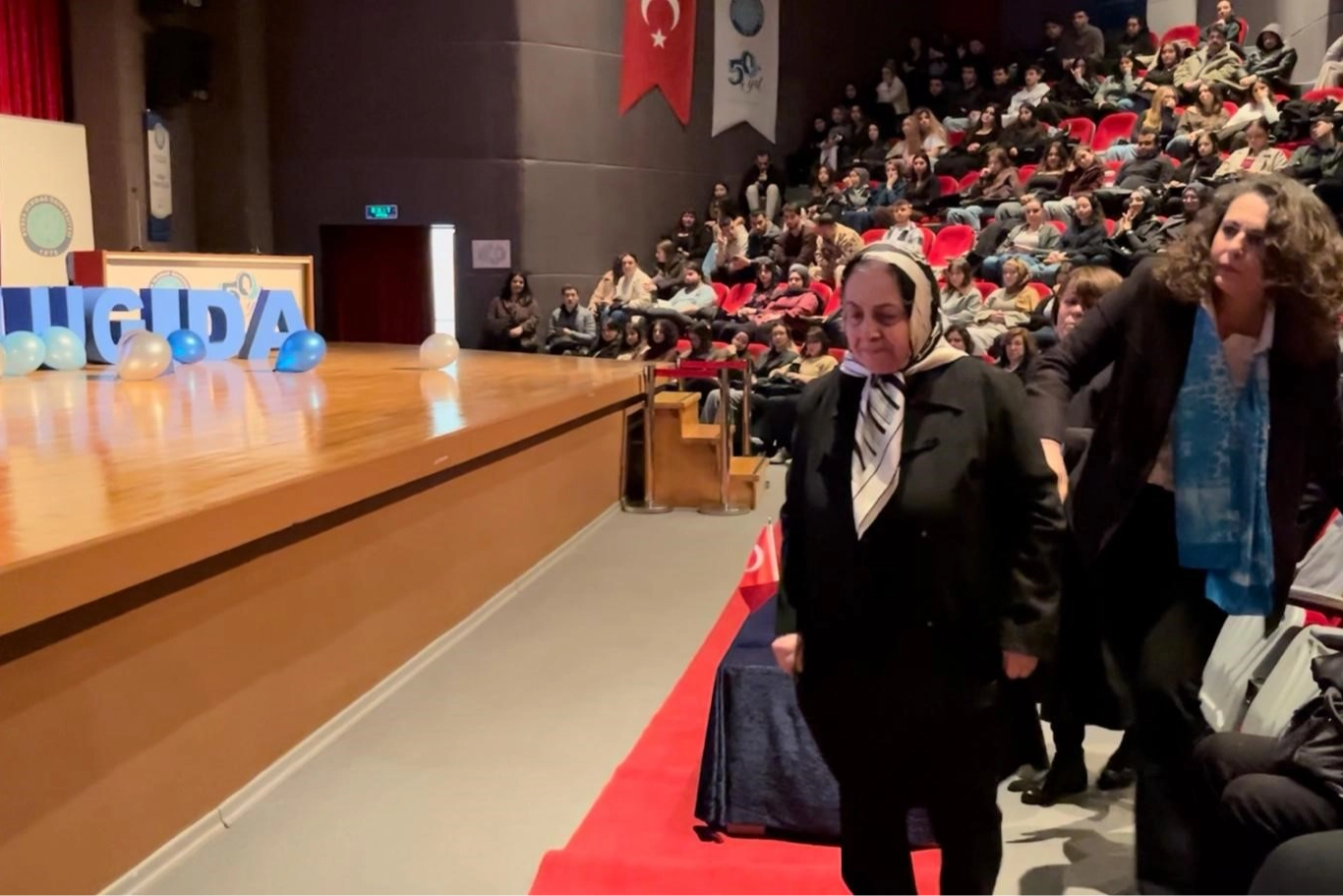 Salondaki katılımcılar 80 yaşındaki emekli öğretmeni ayakta alkışladı.