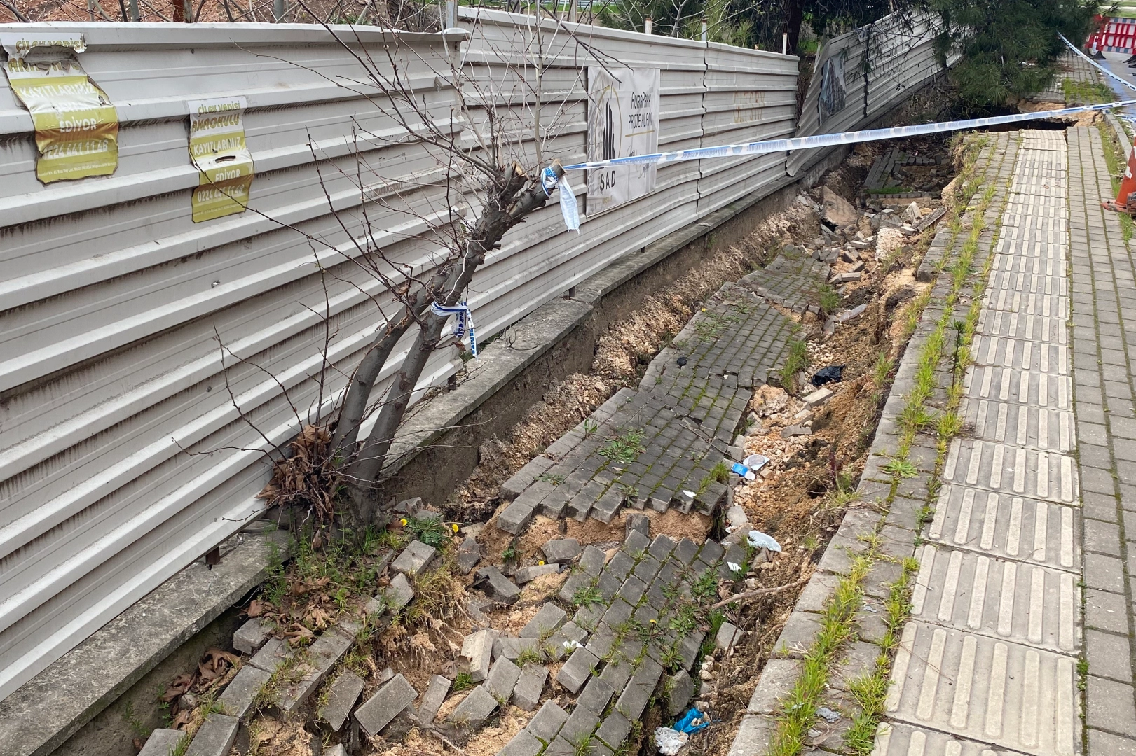 Bursa'nın Nilüfer ilçesine bağlı Ataevler Mahallesi'nde kentsel dönüşüm çalışması esnasında yola zarar verildi. Çökme yaşanırken, Nilüfer Belediyesi Ulaşım Hizmetleri Müdürlüğü ekipleri bölge güvenlik önlemi alarak muhtemel olayın önüne geçti.