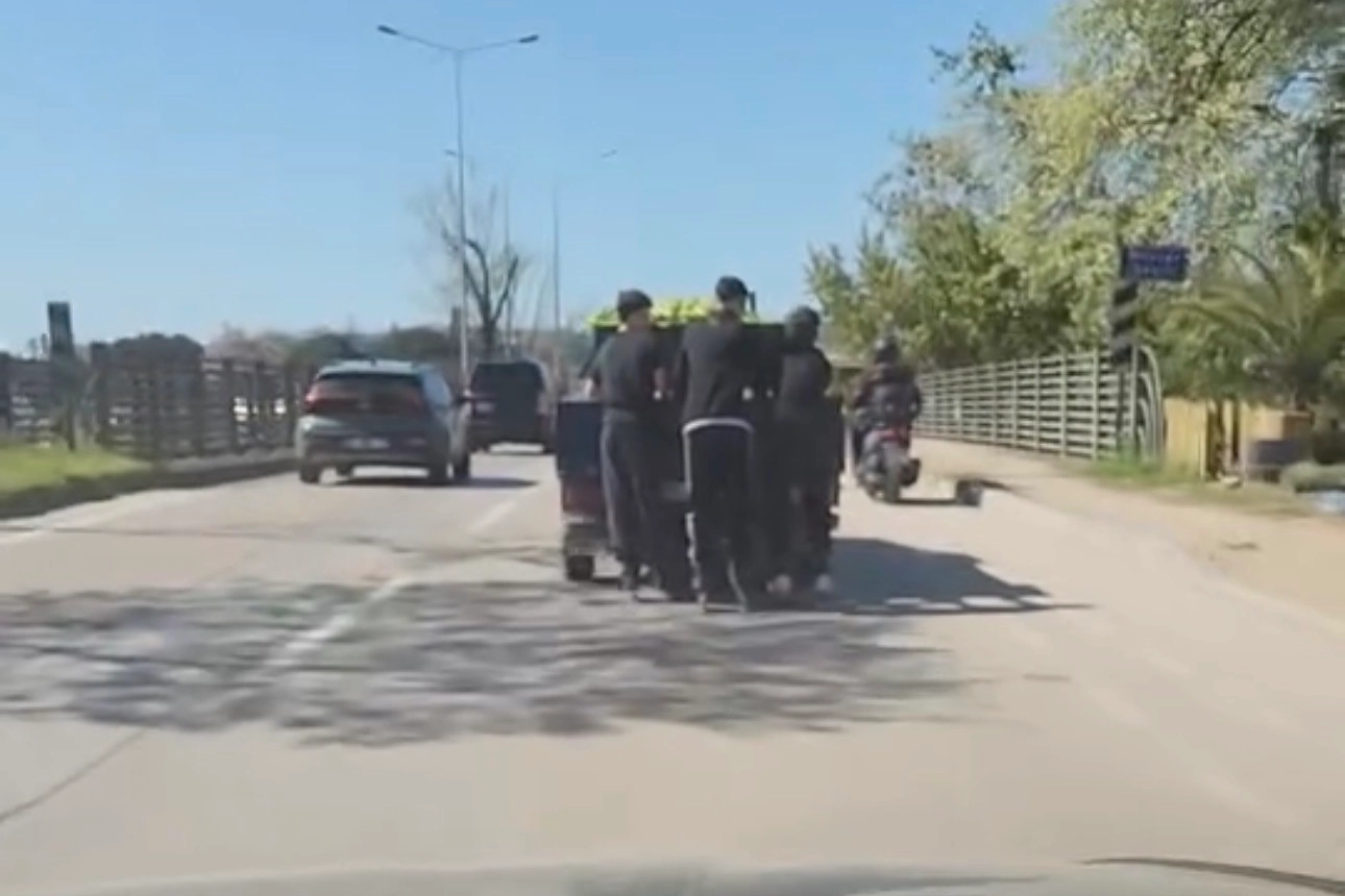 Edinilen bilgilere göre, merkez Osmangazi ilçesi Geçit Mahallesi Sanayi Caddesi üzerinde ilerleyen kamyonetin arkasına tutunan patenli gençler, uzun süre bu şekilde seyahat etti.