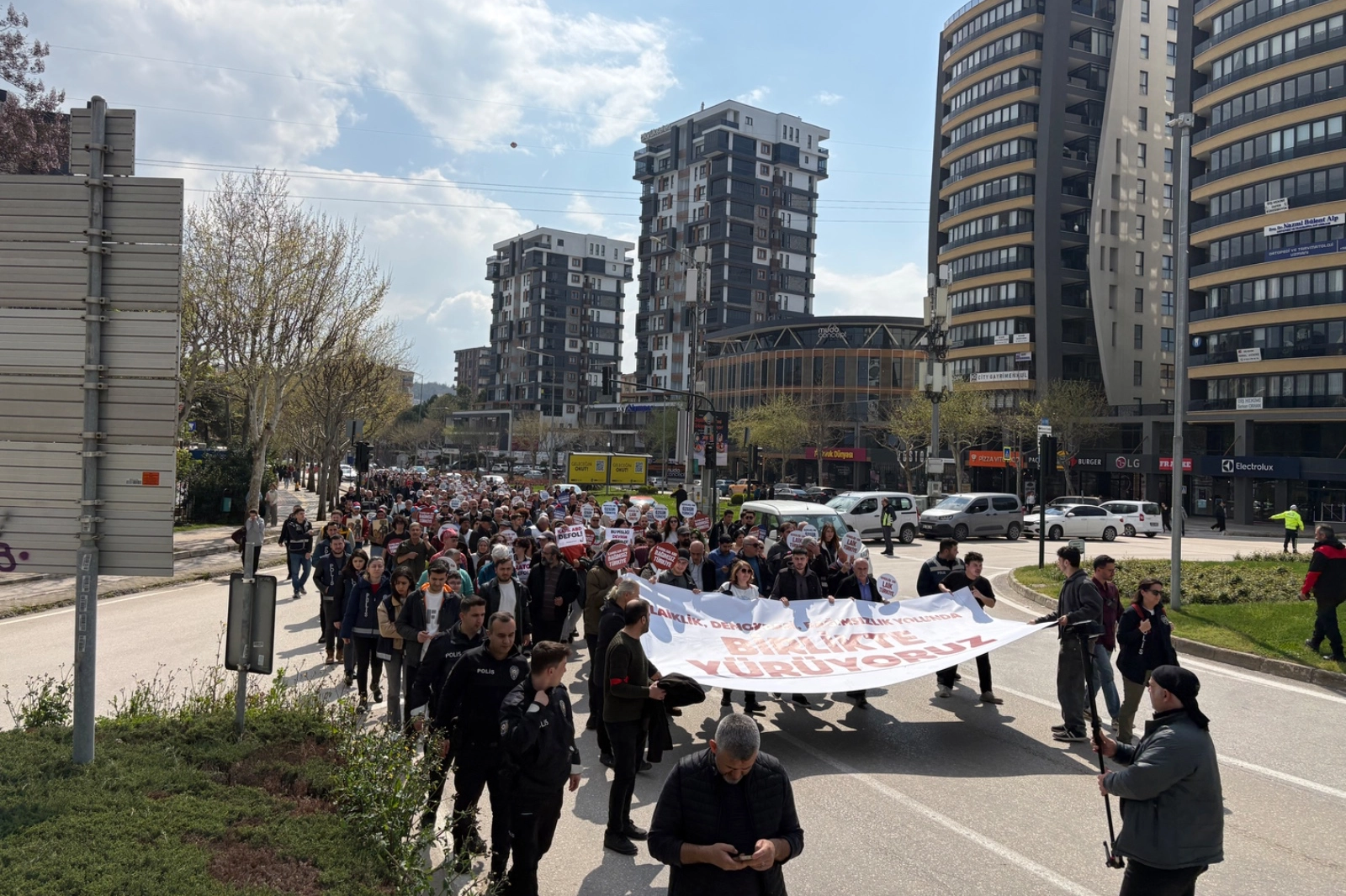 Sol Parti Bursa İl Örgütü’nün “emperyalist saldırı ve gerici dayatmalara karşı laik, demokratik, devrimci, cumhuriyet için omuz omuza” çağrısıyla bugün FSM caddesinde biraraya gelen yurttaşlar hastane alanına yürüdü. Yürüyüşe sivil toplum kuruluşları, sendikalar ve partiler de destek verdi.