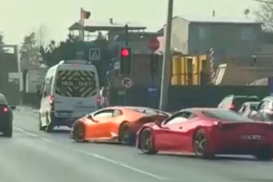 Edinilen bilgiye göre, trafikte seyir halinde olan Lamborghini Huracan ve Ferrari marka iki spor otomobilin sürücüleri, ani şerit değiştirerek diğer araçların önüne geçti.
