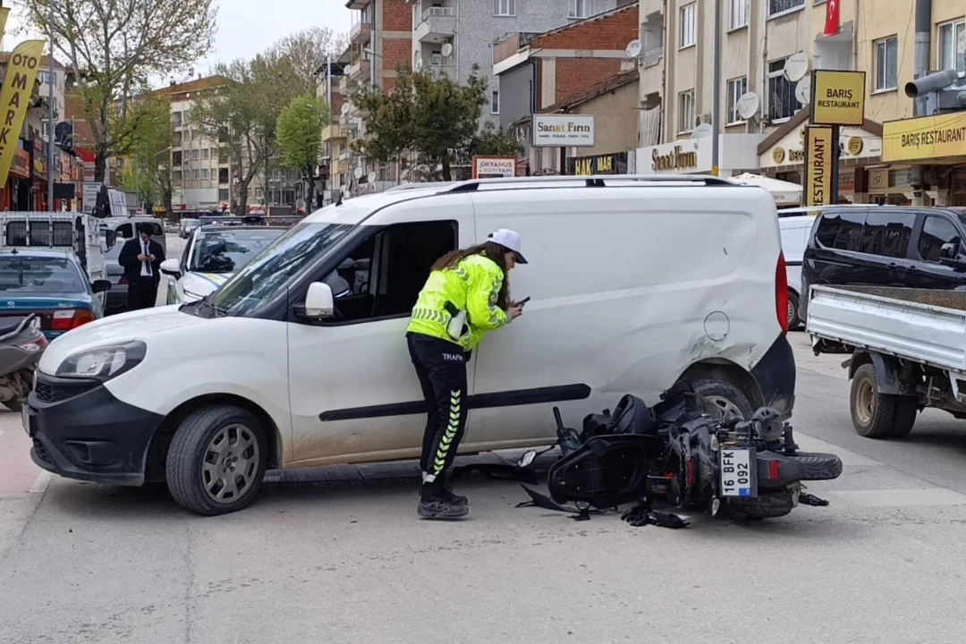Kaza, saat 15.00 sıralarında Orhaniye Mahallesi Ankara Caddesi'nde meydana geldi. Edinilen bilgilere göre, Şefik Ç. (20) idaresindeki 16 BFK 092 plakalı motosiklet, park halindeyken yola çıkan Talha Ş. (20) yönetimindeki 16 AKV 910 plakalı hafif ticari araca yandan çarptı.