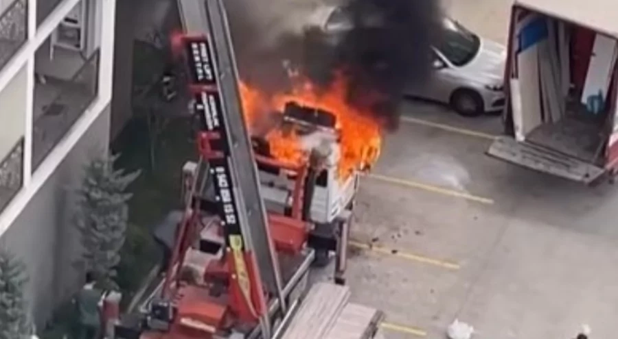 Bir ailenin eşyalarını 6. kattaki dairenin balkonuna çıkarmak için kullanılan eşya taşıma vincinin bağlı olduğu kamyonun kabin kısmında yangın çıktı. Olay kısa sürede site sakinleri arasında paniğe neden oldu. Site içerisinde yoğun duman oluştu.