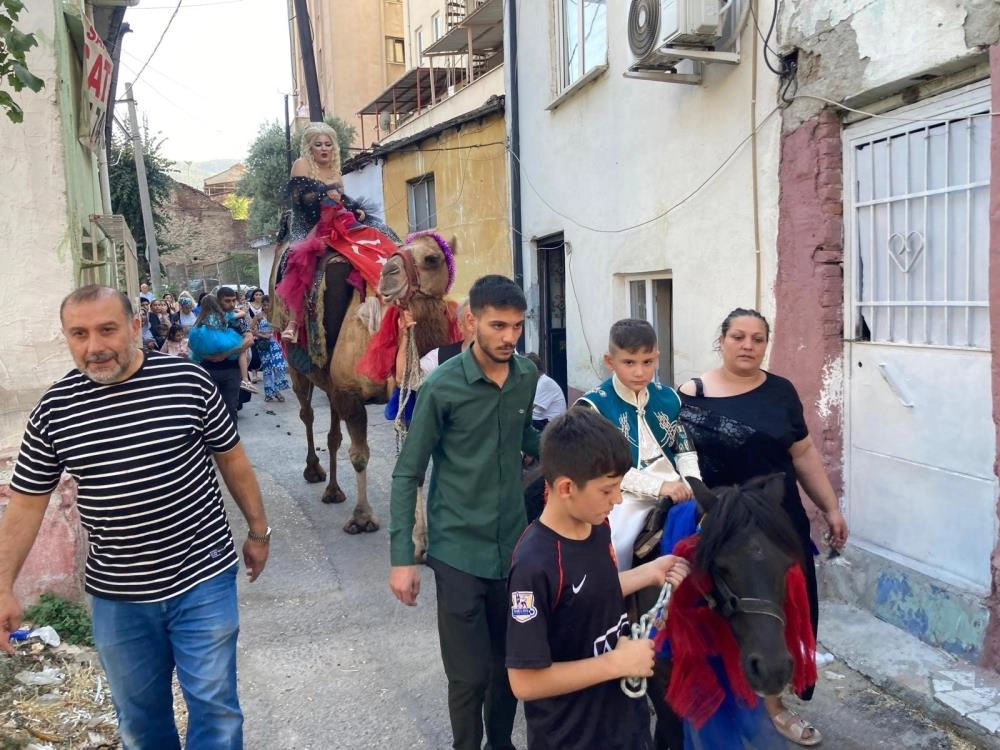 Anne Birsen Güç ise adeta düğün arabası gibi süslenen deveyle oğlunun arkasından mahalle turuna eşlik etti. O anlara şahit olan vatandaşlar gözlerine inanamadı.