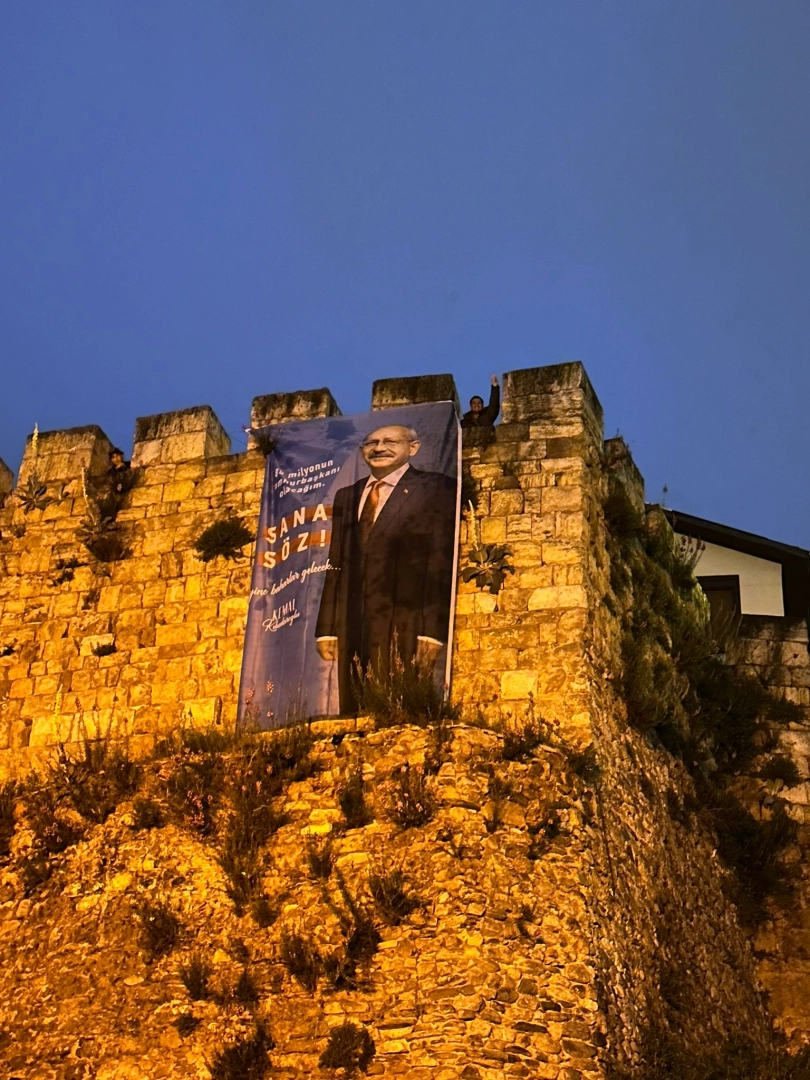 Bursa Osmangazi'de seçim çalışmaları kapsamında hisar kapısındaki surlara ve tophane surlarına CHP Genel Başkanı ve Millet İttifakı Cumhurbaşkanı Adayı Kemal Kılıçdaroğlu'nun 'sana söz baharlar gelecek' yazılı afişlerini asan Kılıçdaroğlu Gönüllüsü 5 genç sabahın erken saatlerinde gözaltına alındı. Gözaltına alınanlar arasında Kılıçdaroğlu Gönüllüleri Bursa İl Koordinatörü Aytaç Şahin’in de aralarında bulunduğu belirtildi.