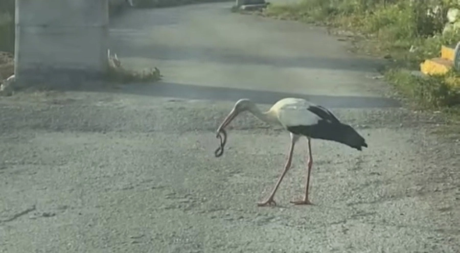 Leylek köyü Karaağaç'ta bir leylek gördüğü yılanı tek hamle ile midesine indirdi. O anlar bir vatandaş tarafından saniye saniye kayda alındı.