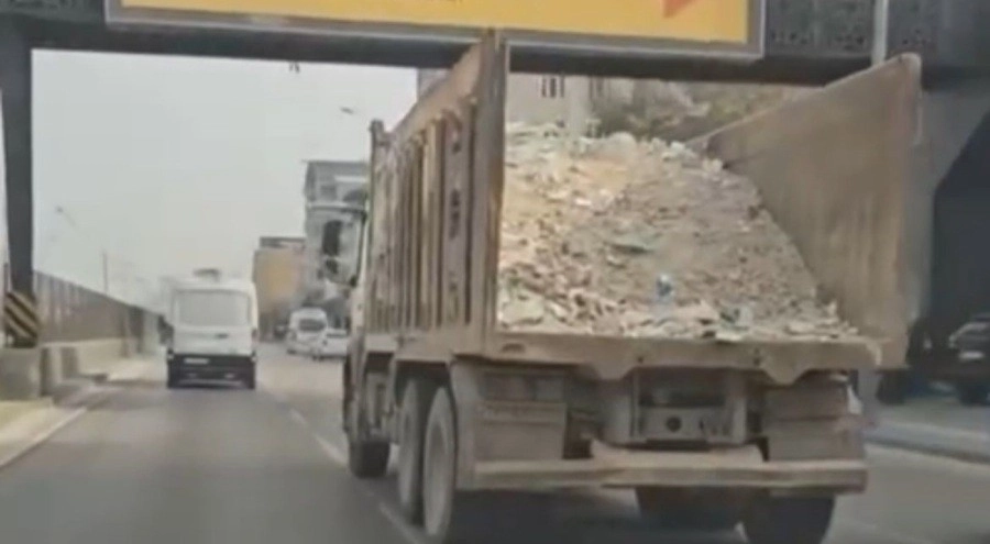 Bursa'nın Yıldırım ilçesi Arabayatağı Mahallesi'nden Kestel istikametine ilerleyen hafriyat kamyonu, tedbir almadan taşıdığı molozla tehlikeli hareketler yaparak kilometrelerce ilerledi.