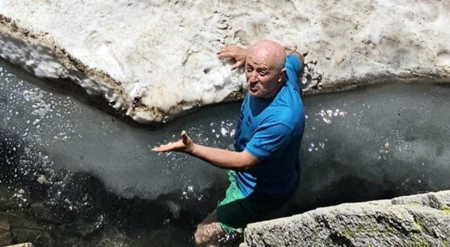 Saklı Göl ve Buzlu Göl'e geldiklerinde gölün bir kısmının hala buzlarla kaplı olduğunu ekip, gerekli önlemler aldıktan sonra buz kaplı gölde hem yürüdü hem de yüzdü.