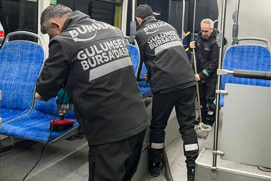 Bursa Büyükşehir Belediyesi, Ramazan Bayramı öncesinde, günde 800 binden fazla vatandaşın kullandığı toplu taşıma araçlarında temizlik çalışması gerçekleştirdi.