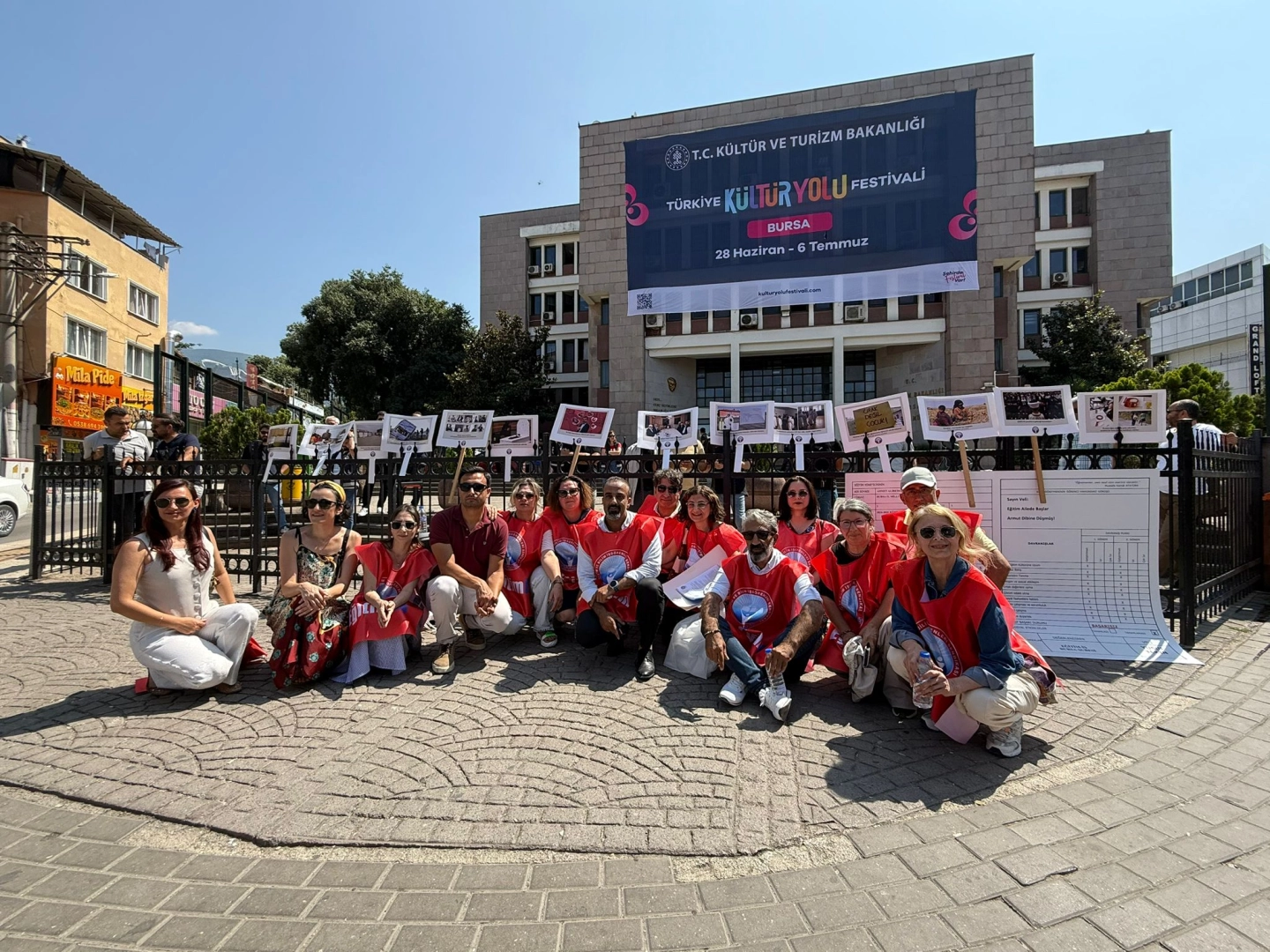 Eğitim İş Bursa Şubesi bugün Bursa’daki 1 yıllık eğitim-öğretim dönemini değerlendirmek ve ortaya çıkan tabloyu paylaşmak için İl Milli Eğitim Müdürlüğü önünde 14.00’te basın açıklaması yapmak istedi. Eyleme gelen sendika yöneticileri ve üyeler, polis tarafından müdürlük kapısından içeri alınmadı. Sendika yöneticileri ve üyeler müdürlük kapısından içeri alınmamaları sonrası kapı önünde oturma eylemi gerçekleştirdi. Eğitim İş Bursa Şube Başkanı Özkan Rona oturma eylemi sırasında şunları söyledi: “Şu an emniyet güçlerinin bu hatadan dönmelerini bekliyoruz. Suç işleyen ve yasal haklarımızı engelleyen bu talimatı veren kolluğun ve üst amirlerinin bu hatadan dönmelerini beliyoruz. Umuyoruz ki döneceklerdir. Çünkü biz yasal haklarımızı kullanmakta son derece kararlıyız. Demokratik haklarımızın kısıtlanmasına izin vermeyeceğiz. Her türlü tarikat, gerici yapı, vakıf ve dernek görünümlü her türlü Cumhuriyet ve Atatürk düşmanı bu kapıdan (Bursa İl Milli Eğitim Müdürlüğü) kolaylıkla girebilir, yukarıya çıkabilir, hatta İl Milli eğitim Müdürü ile protokoller de yapabilir. Onunla Bursa’da eğitimi nasıl gericileştireceklerine dair planlamalar da yapabilir ama öğretmenler bu kapıdan içeri giremez. Ama Cumhuriyetin ilerici öğretmenleri onların foyalarını ortaya dökmek için basın açıklaması yapamaz deniliyor. Biz de bu durumu protesto ediyoruz” Oturma eylemi sonrası müdürlük bahçesine alınmayan öğretmenler kapı önünde planladıkları basın açıklamasını gerçekleştirdi.