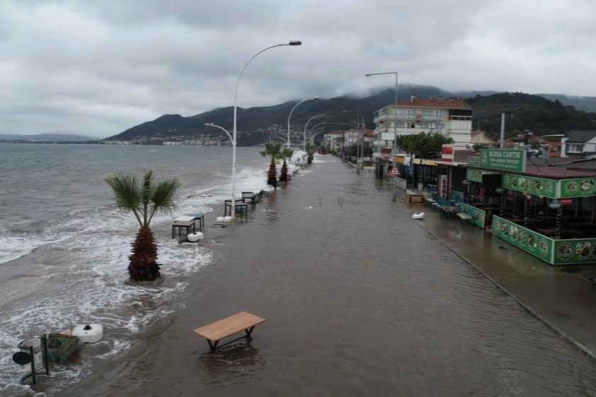 Bursa'nın Gemlik ilçesine bağlı Kurşunlu Mahallesi'nde Marmara Denizi'nde etkili olan kuvvetli fırtına ve yoğun gelgit nedeniyle deniz seviyesi yükseldi. Kıyıya vuran dev dalgalar sahil şeridini aşarak yolu kapladı, bazı bölgelerde su seviyesi kaldırım ve iş yerlerinin önüne kadar ulaştı.