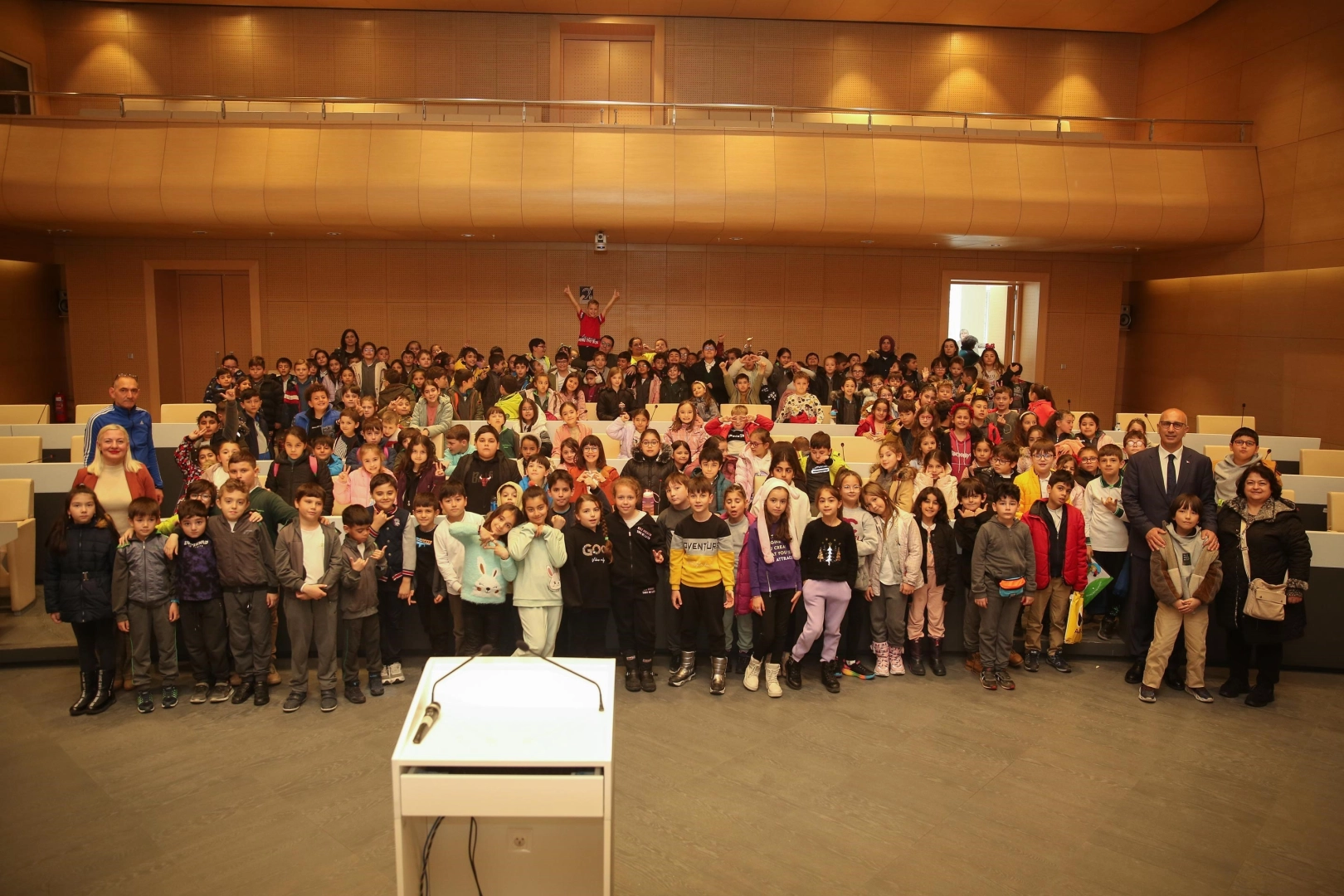 Nilüfer Belediyesi, Görükle Dumlupınar İlkokulu’nun 3. sınıf öğrencilerini ağırladı. Nilüfer Belediye Başkan Yardımcıları Dr. Sibel Özer ve Remzi Çınar ile Nilüfer Barış Meclis Salonu’nda bir araya gelen yaklaşık 200 öğrenci, Hayat Bilgisi’nin bir konusunu belediyede işledi. Hayat Bilgisi dersinin yerel yönetimler konusu için Nilüfer Belediyesi’ne gelen öğrenciler, detaylı bilgi sahibi oldu. Yerel yönetimlerin görev, yetki ve sorumluluklarını başkan yardımcıları Dr. Sibel Özer ve Remzi Çınar’dan öğrenen öğrenciler, merak ettikleri sorulara da yanıt buldu. Nilüfer Belediye Başkan Yardımcıları Dr. Sibel Özer ve Remzi Çınar, Nilüfer Belediyesi’nin çalışmalarını da öğrencilerle paylaştı. Hayat Bilgisi dersini uygulamalı olarak öğrenen öğrenciler, farklı bir deneyim yaşadı. Okullarına park talebini de Nilüfer Belediye Başkan Yardımcıları Sibel Özer ve Remzi Çınar’a ileten çocuklar, destek sözü alınca sevinç çığlıkları attılar. Görükle Dumlupınar İlkokulu öğrencileri, dersin ardından şarkılar söyleyip “Atatürk ve Çocuk” gösterisi sunarak, 23 Nisan Ulusal Egemenlik ve Çocuk Bayramı coşkusunu erken yaşadılar.