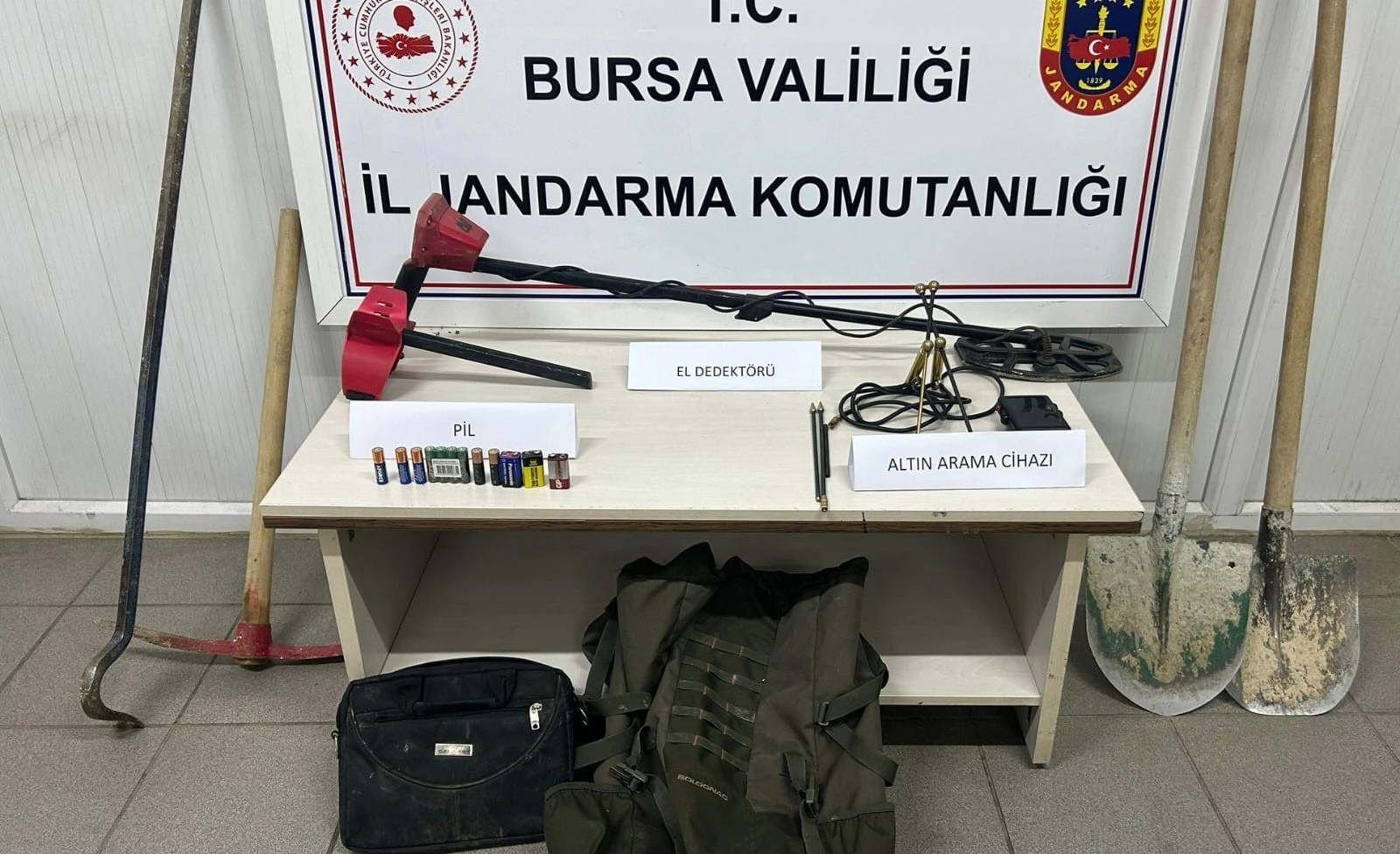 İnegöl Jandarma Komutanlığı ekipleri Ortaköy mahallesinde devriye attıkları sırada sit alanında kazı yapıldığını fark ettiler. Ekipler kaçak kazı yapan 3 şahsı kıskıvrak yakaladılar. Yakalanan Y.Y., M.A. Ve H.M. gözaltına alındı. Şüpheli şahısların kaçak kazı esnasında kullandığı el dedektörü, kazma, kürek, altın arama dedektörü ele geçirildi. Jandarma Komutanlığı ektikleri soruşturma başlattı.