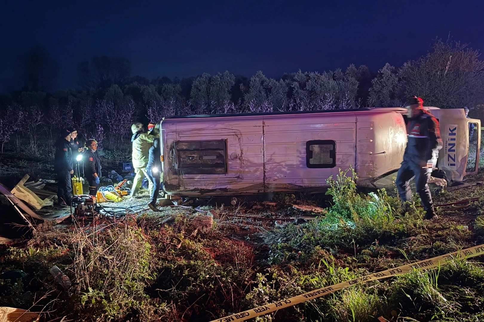 Bursa'nın İznik ilçesinde yolcu minibüsünün devrilmesi sonucu 1 kişi hayatını kaybetti, 12 kişi yaralandı.