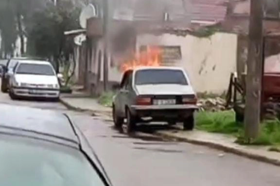 Karacabey ilçesi Karacaahmet Mahallesi Cezaevi Caddesi'nde park halindeki bir otomobilden dumanlar yükselmeye başladı.