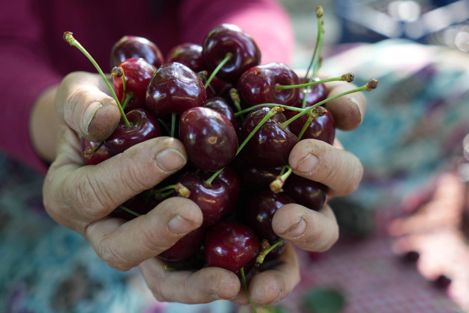 İŞÇİ BULUNAMIYOR Haziran ayında başlanan kiraz hasadında çalışacak mevsimlik işçi bulamadıklarını ifade eden Yürüten, "Şu anda ürünümüzü 55 ila 60 lira arasında veriyoruz. Ama daha da artması lazım, çünkü maliyetlerle kafa kafaya gidiyor. Maliyetinin büyük bir kısmı ilaçlara gidiyor. İşçi bulmakta sıkıntımız var. Hasat için çalıştırabileceğimiz işçi bulamıyoruz. Günlük bin lira yevmiye ve 3 öğün yemek veriyoruz ama yine de çalıştırabileceğimiz kimseyi bulamıyoruz. Geçtiğimiz yıllarda mevsimlik işçiler de geliyordu fakat bu sene gelmedi. Kendi kendimize topluyoruz. Ürünü yetiştiremiyoruz. Yetiştiremezsek de ürün kararıyor ve pazar payını kaybediyor" dedi.