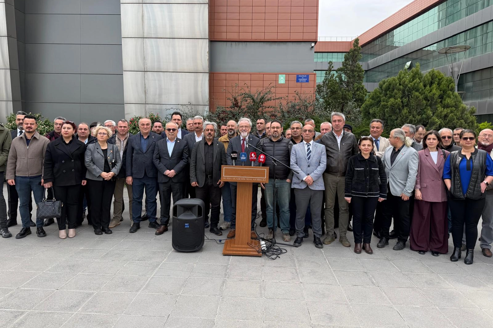 TMMOB Bursa İl Koordinasyonu’nun düzenlediği basın açıklamasına CHP Yüksek Disiplin Kurulu Üyesi Yasemin Rençber, CHP Bursa İl Başkanı Nihat Yeşiltaş ve çok sayıda sivil toplum temsilcisi katıldı.