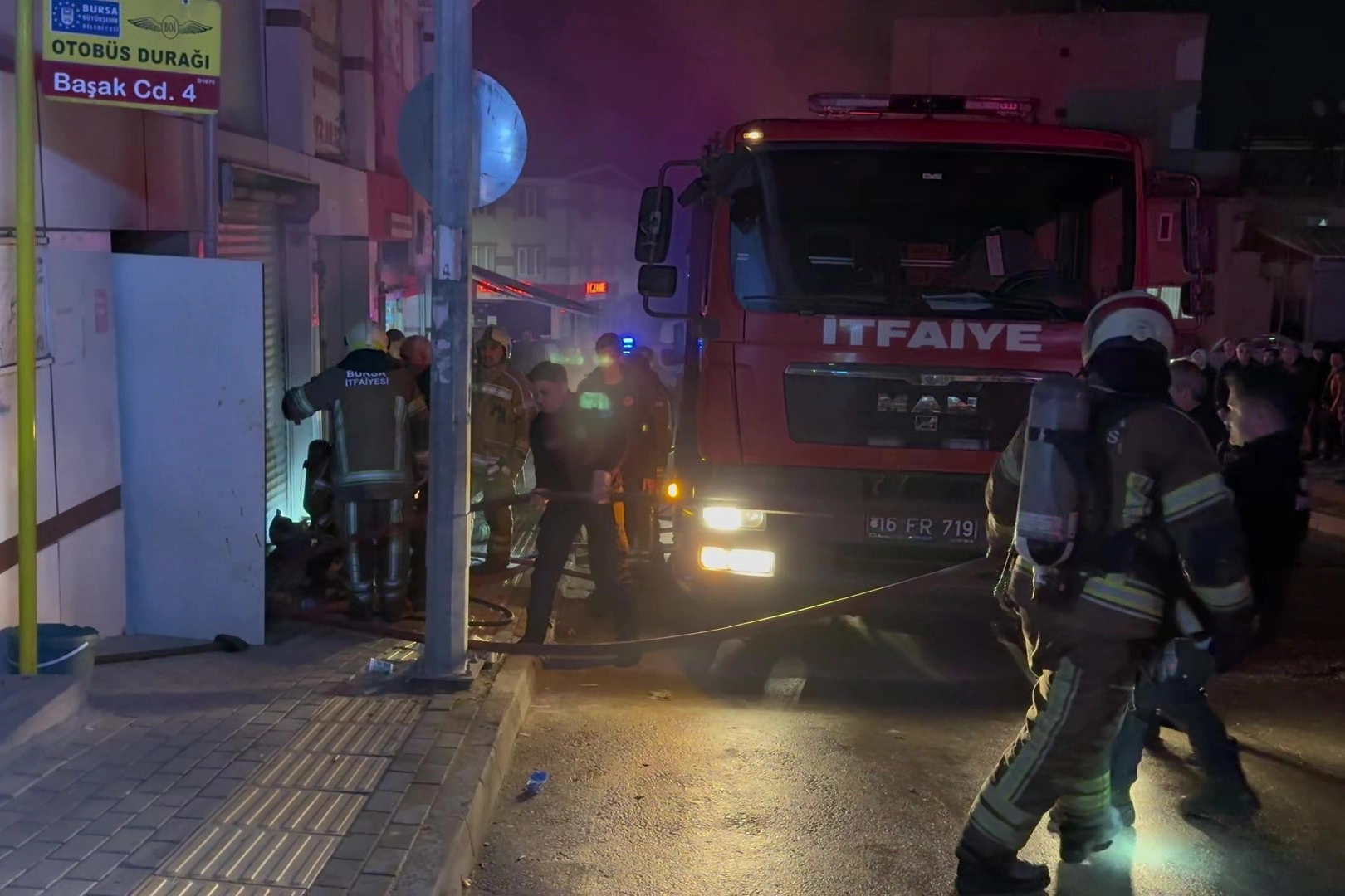 Yangın, saat 00.30 sıralarında Yıldırım ilçesi Yiğitler Mahallesi Türkmenbaşı Caddesi üzerinde bulunan bir depoda meydana geldi.