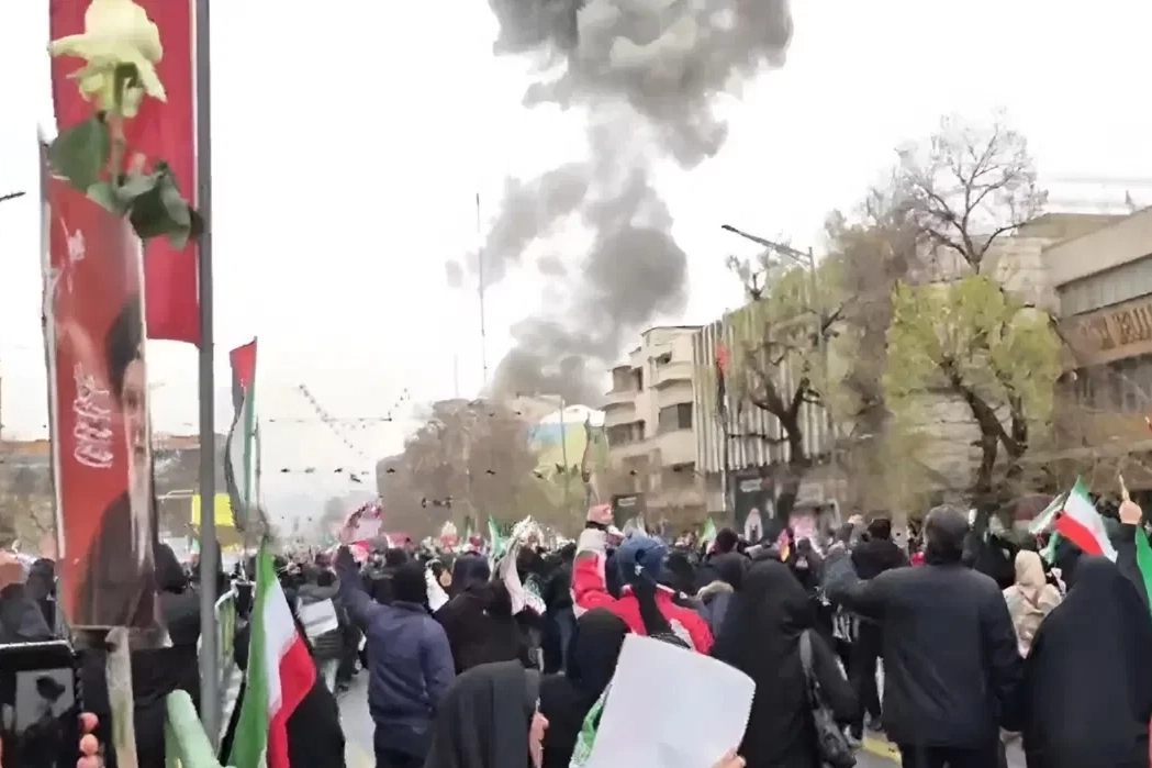 İsrail'in bu bildirisinin ardından Tahran'daki miting alanında patlama sesi duyuldu ve dumanla yükseldi.