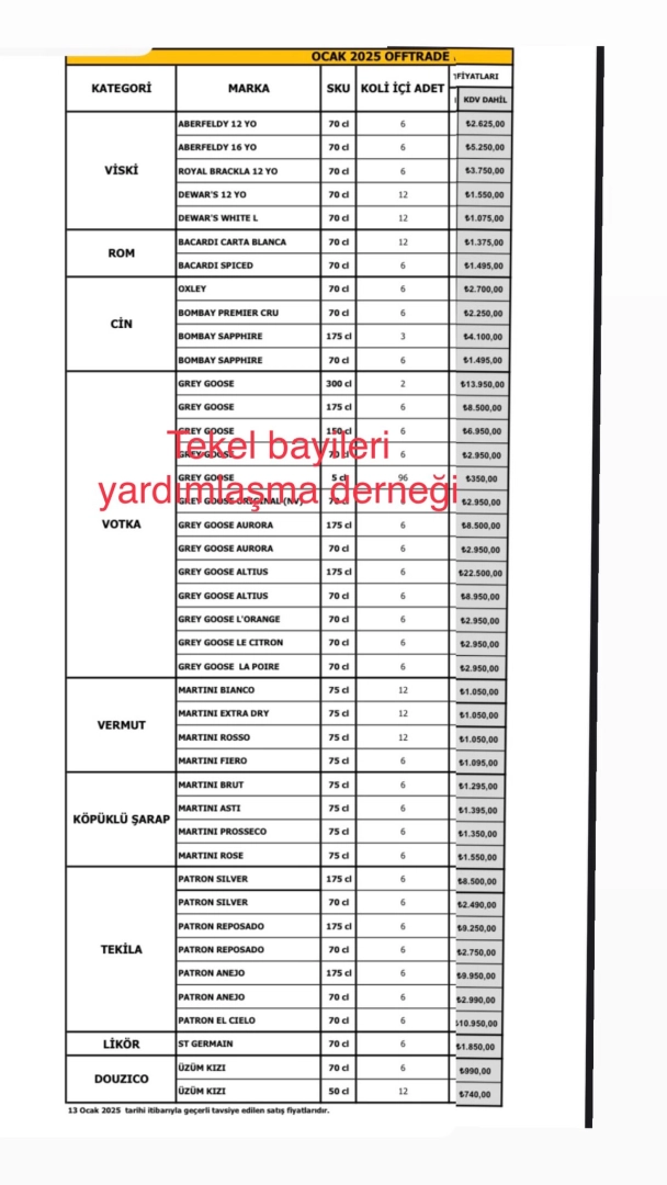 25 Aralık 2024 tarihinde Resmi Gazete'de yayımlanan kararla alkollü içeceklerde maktu ÖTV tutarları artırıldı. Yüksek alkollü ve damıtılmış içkilerin maktu ÖTV tutarı 1,269 TL'den 1,428 TL'ye yükseltildi. Kararın ardından alkol fiyatlarına zam gelmeye başladı. 13 Ocak'ta açıklama yapan Tekel Bayileri Yardımlaşma Derneği (TBYD) Başkanı Erol Dündar, Adap rakı ve Svyak votka gruplarına zam geldiğini duyurmuştu. Bugün de sosyal paylaşım sitesi X'te yaptığı paylaşımda ''Bir ithal alkol grubuna daha zam geldi. Viski votka tekila cin zam yağmuru devam ediyor'' açıklamasıyla başka bir ürün grubuna daha zam geldiğini duyurdu. Zam gelen alkol grubu şöyle: