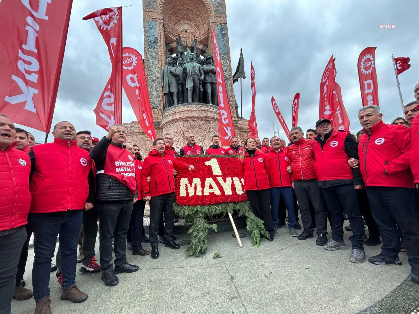 DİSK, 1 Mayıs Emek ve Dayanışma Günü nedeniyle Taksim’deki Atatürk Anıtı’na yürüdü. Anıta çelenk bırakan DİSK Genel Başkanı Arzu Çerkezoğlu, şu açıklamayı yaptı: “Bugün, işçi sınıfının uluslararası birlik, mücadele ve dayanışma günü. Öncelikle, 1 Mayıs 1977’de Taksim Meydanı’nda yitirdiğimiz arkadaşlarımızı, 1989’da Taksim’in ve 1 Mayıs’ın özgürleştirilmesi mücadelesinde yitirdiğimiz arkadaşımızı ve 1996 1 Mayıs’ında Kadıköy’de yitirdiğimiz arkadaşlarımızı saygıyla ve özlemle anıyoruz.