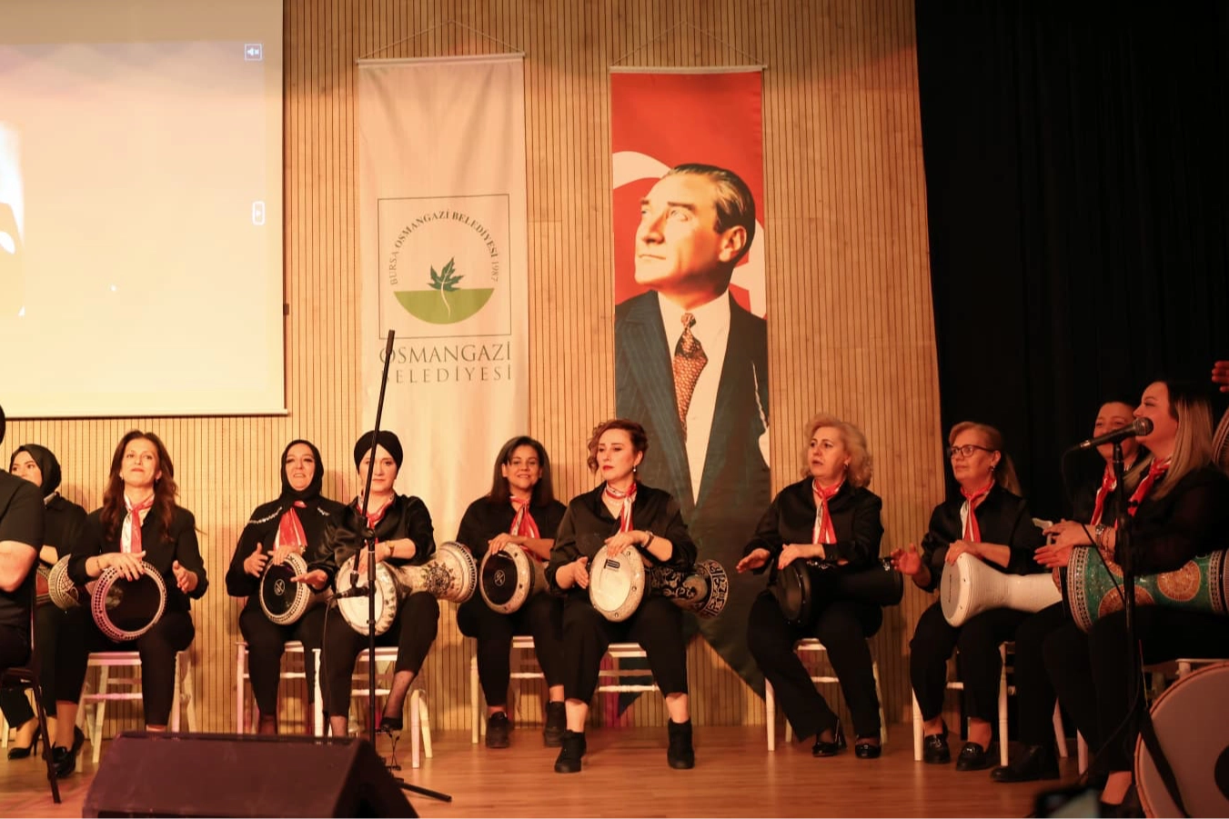 Osmangazi Gösteri Merkezi’nde düzenlenen konserde kadınlar, büyüleyici darbuka performanslarıyla izleyenlere unutulmaz bir gece yaşattı. Atatürk’ün sevdiği şarkıların seslendirilmesiyle başlayan konser, Ahenka Kadın Ritim Topluluğu’nun etkileyici ritim gösterisiyle tamamlandı. Kültür ve sanatın harmanlandığı bu özel geceyi kaçırmak istemeyen sanatseverler, salonu tamamen doldurarak ritimlere alkışlarıyla katıldı