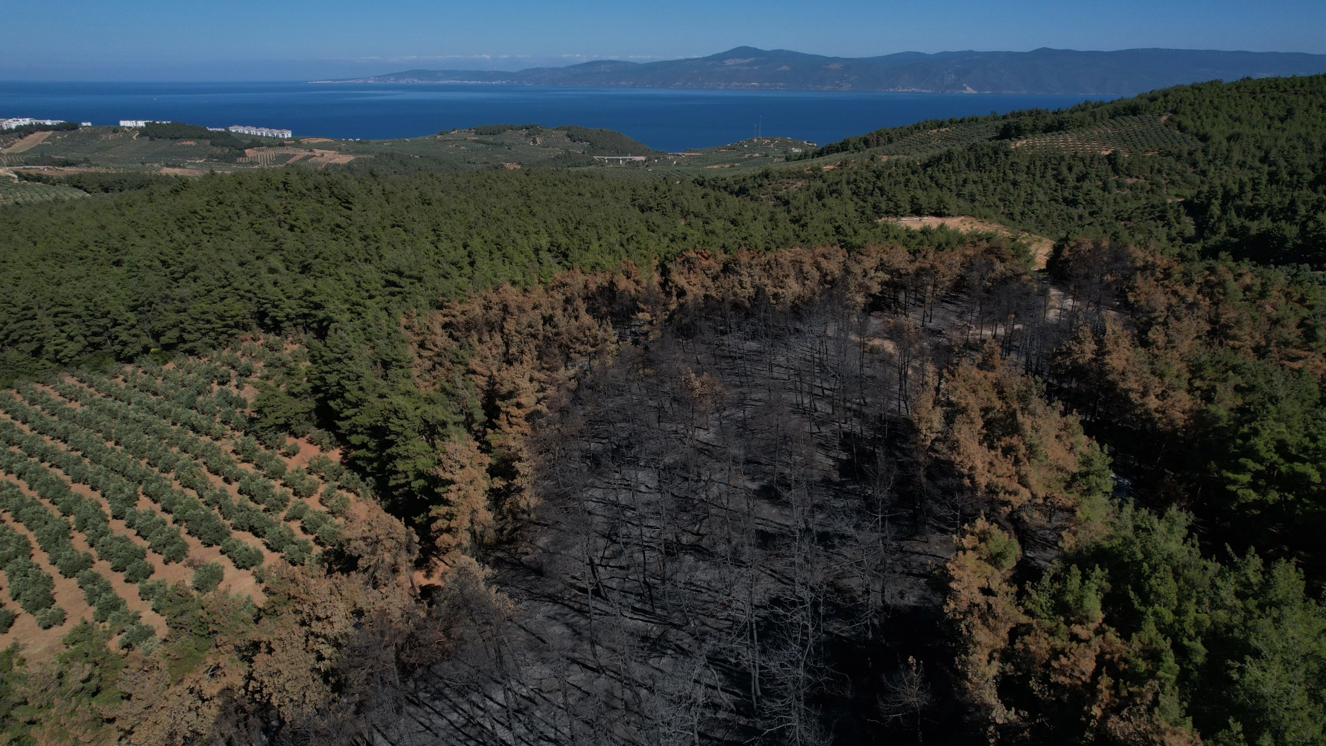 Bursa’nın Mudanya ilçesi Göynüklü Mahallesi'nde 2 Eylül 2023 tarihinde çıkan yangında küle dönen 25 hektarlık alanda tespit çalışmaları sürüyor. Yaklaşık 17 saatlik çalışma sonunda 6 uçak, 6 helikopter, 52 arasöz, 16 ilk müdahale aracı, 32 su tankeri, 20 iş makinesi ve 420 personelin müdahalesiyle söndürülen alevlerin verdiği zarar havadan ve karadan yapılan çalışmayla veri tabanı oluşturuluyor. Orman Bölge Müdürlüğü ekipleri, alandaki yanan ağaçların kesilip kesilmeyeceğine ve yerine dikilecek fidanların tespitini aralıksız sürdürüyor.