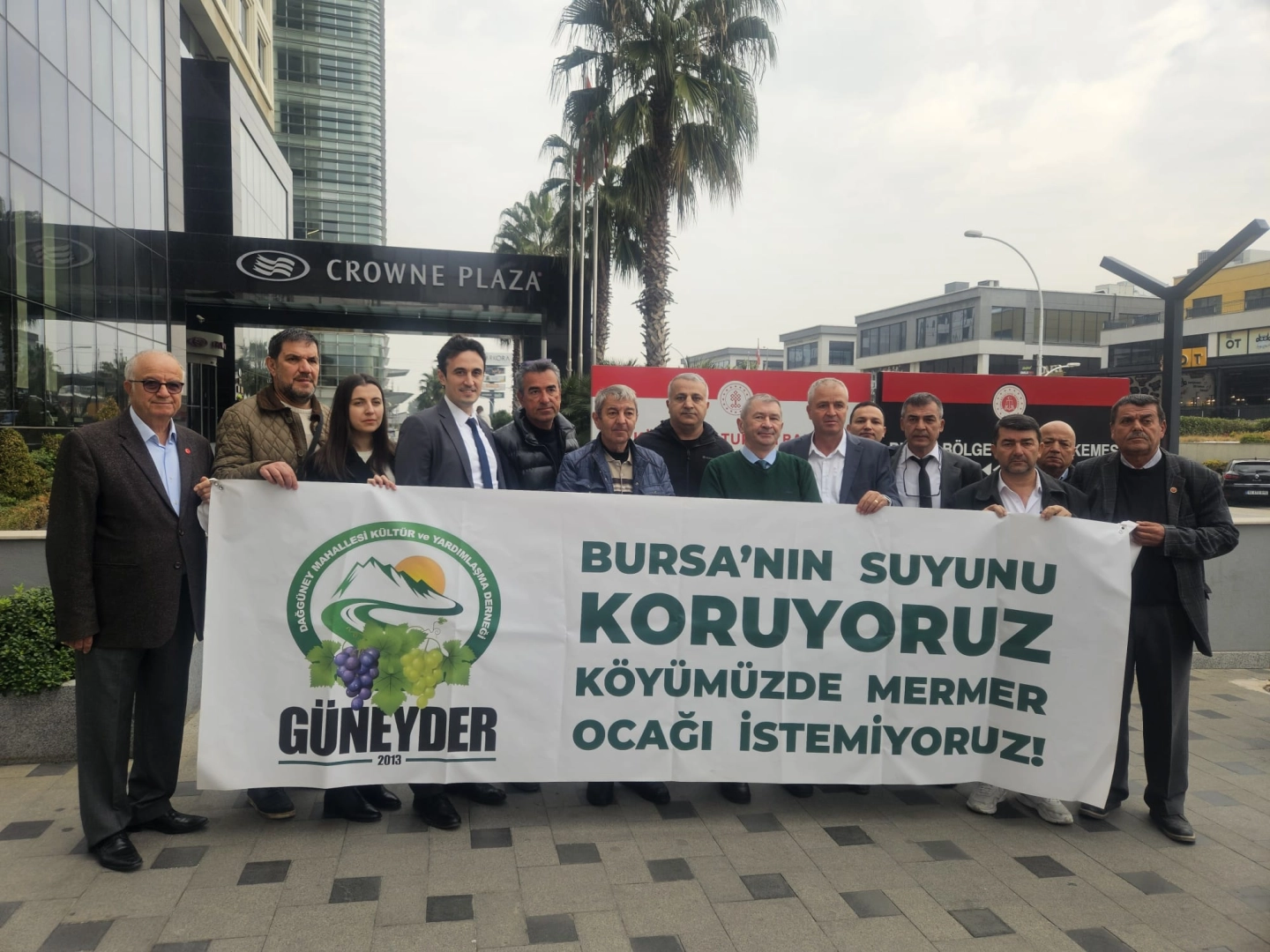 Avukat Atabek, bölgenin maden çalışmaları nedeniyle kötü bir hale geldiğini belirterek, özellikle toz oluşumu ve Çınarcık Barajı üzerinde oluşturduğu riskler nedeniyle mermer ocağına karşı olduklarını vurguladı. "BURSA İÇME SUYU BULAMAYACAK" GÜNEYDER Dernek Başkanı Hüseyin Yücel ise “Ağaçlarımız ve su kaynaklarımız büyük zarar görüyor, bu durumdan oldukça rahatsızız ve mermer ocağı faaliyetinin durmasını istiyoruz” dedi. DOĞADER Başkanı Murat Demir ise, "Yaklaşık bir yıldır vermiş olduğumuz mücadelenin sonuna gelmiş bulunmaktayız. Bursa'nın suyunun karşılanacağı havzada mermer ocağı yapılması sadece o köye değil, Bursalıların suyuna yapılmış bir tehdittir. Biz yetkililerden madencilik faaliyetlerine izin verirken nereye izin verdiklerini incelemelerini istiyoruz. Eğer bu vahşi madencilik faaliyetleri devam ederse Bursa içme suyu bulamayacak" diye konuştu.