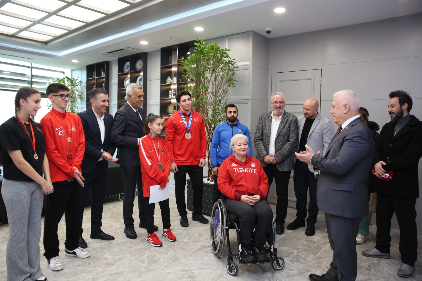 Ziyaretten duyduğu memnuniyeti diye getiren Başkan Mustafa Bozbey, “Bursa’nın yetiştirdiği sporcularımızla ülkemizi ve Bursa’mızı ulusal ve uluslararası alanda en iyi şekilde temsil ettikleri için gurur duyuyoruz. Paris 2024 Paralimpik Oyunları’ndan atıcılık 2’ncisi Aysel Özgan, U20 Dünya Güreş 3’üncüsü Ahmet Yağan, Taekwondo Avrupa Şampiyonu Elif Mutlu ve Dans Çiftler Dünya Şampiyonu Ali Efe Aydın ve Beren Aydın hepimizin göğsünü kabarttı. Başarılarını artırarak sürdüreceklerdir. Çocukların ve gençlerin spora başlamalarına ve başarı elde etmede örnek olacaklarına da inanıyorum. Tüm sporcularımızı kutluyorum” dedi.