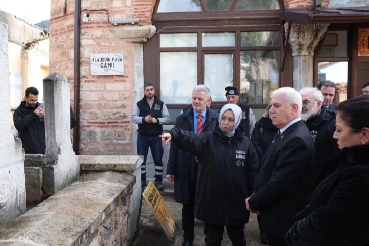 Bursa Büyükşehir Belediye Başkanı Mustafa Bozbey de Alaüddin Paşa Camii'ni ziyaret ederek çalışmaları yerinde inceledi. Günümüzden tam 700 yıl önce Bursa'nın fethinin ardından inşa edilen caminin Bursa tarihi açısından büyük önem taşıdığını söyleyen Başkan Mustafa Bozbey, "Gerçekleştirdiğimiz uygulamayla hazireyi olduğu gibi ortaya çıkardık. Arkadaşlarımız yoğun bir çalışma yürüttü. Alanda dönemin önemli insanlarının mezarları da bulunuyor. Hem büyüklerin hem de çocukların mezarları var. Bu kıymetli mezar taşları caminin haziresinde yeniden gün yüzüne çıkarıldı" dedi.