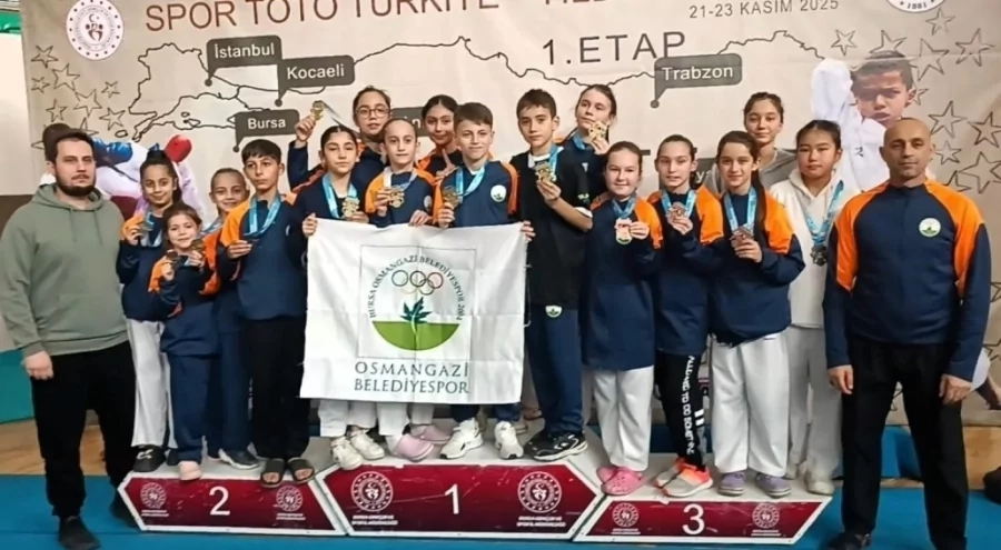 Türkiye Karate Federasyonu'nun 2025 yılı faaliyet programında yer alan Türkiye Yıldızlar Ligi 1. Etap Karate Turnuvası, nefes kesen karşılaşmalara sahne oldu. Toplam 7 il, 40 kulüp ve 350 sporcunun boy gösterdiği müsabakaya Osmangazi Belediyespor Karate Takımı, adeta damga vurdu. Turnuvaya 26 sporcu ile katılan ekip, rakipleri karşısında 9 altın, 10 gümüş ve 5 bronz madalya kazanarak başarısını bir kez daha ortaya koydu. Sporcular ile antrenörlerini yürekten kutlayan Osmangazi Belediye Başkanı Erkan Aydın, genç yeteneklerin disiplinli çalışmalarının bu başarıda önemli bir rol oynadığını vurguladı.