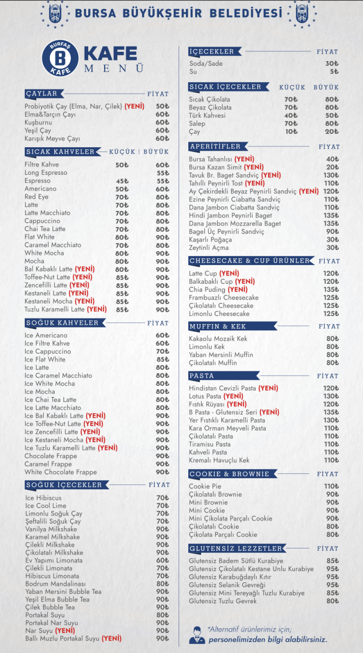 BURFAŞ B CAFE MENÜ FİYATLARI