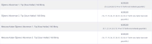 Şehir içi ulaşımda kullanmak üzere öğrencilerin alabilecekleri abonman BursaKart ücretleri şöyle:
