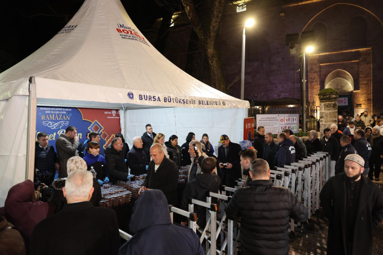 Bursa Büyükşehir Belediye Başkanı Mustafa Bozbey, eşi Seden Bozbey ile birlikte Ramazan ayının başlangıcında Ulu Cami’de kılınan ilk teravih namazının ardından, Ramazan'ın hayırlı ve bereketli olmasını dileyerek vatandaşlara tatlı ikramında bulundu.