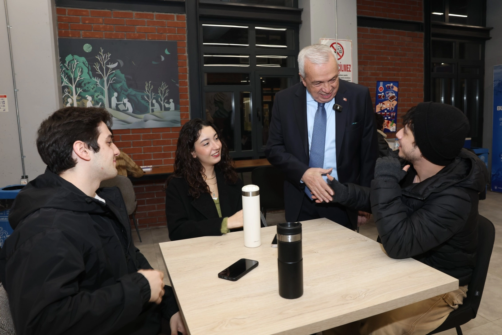 Finallere hazırlanan üniversite öğrencileriyle Koza Kütüphane’de bir araya gelen Nilüfer Belediye Başkanı Şadi Özdemir, gençlerin taleplerini dinleyerek sınav dönemine yönelik destekleri yerinde değerlendirdi.