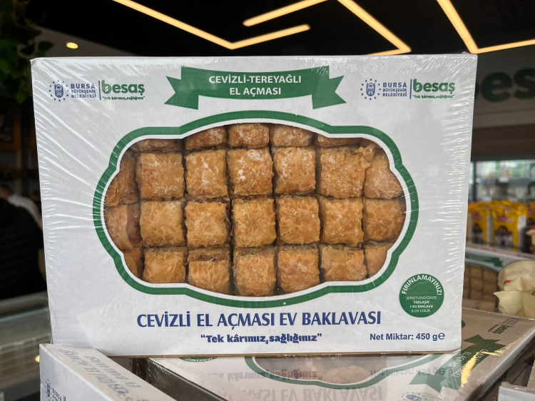 Bursa Büyükşehir Belediyesi'nin iştiraki BESAŞ tarafından satılan cevizli baklavalar bayram öncesi kısa sürede tükendi. 10 bin adet baklava bayram öncesi büyük ilgi gördü.