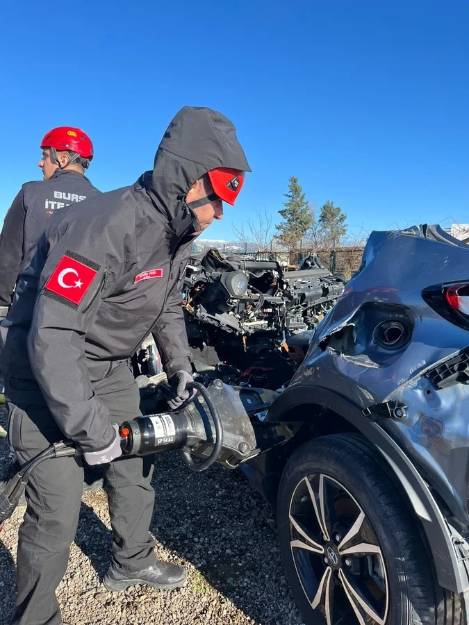 Hortum kullanımı ve söndürme prensipleri, iniş çıkış sistemleri, sedye ile tahliye uygulamaları, kaza yeri güvenliğinin sağlanması, hidrolik kurtarma ekipmanlarının etkin kullanımı ve yaralı tahliyesi gibi konular teorik ve uygulamalı olarak anlatıldı.