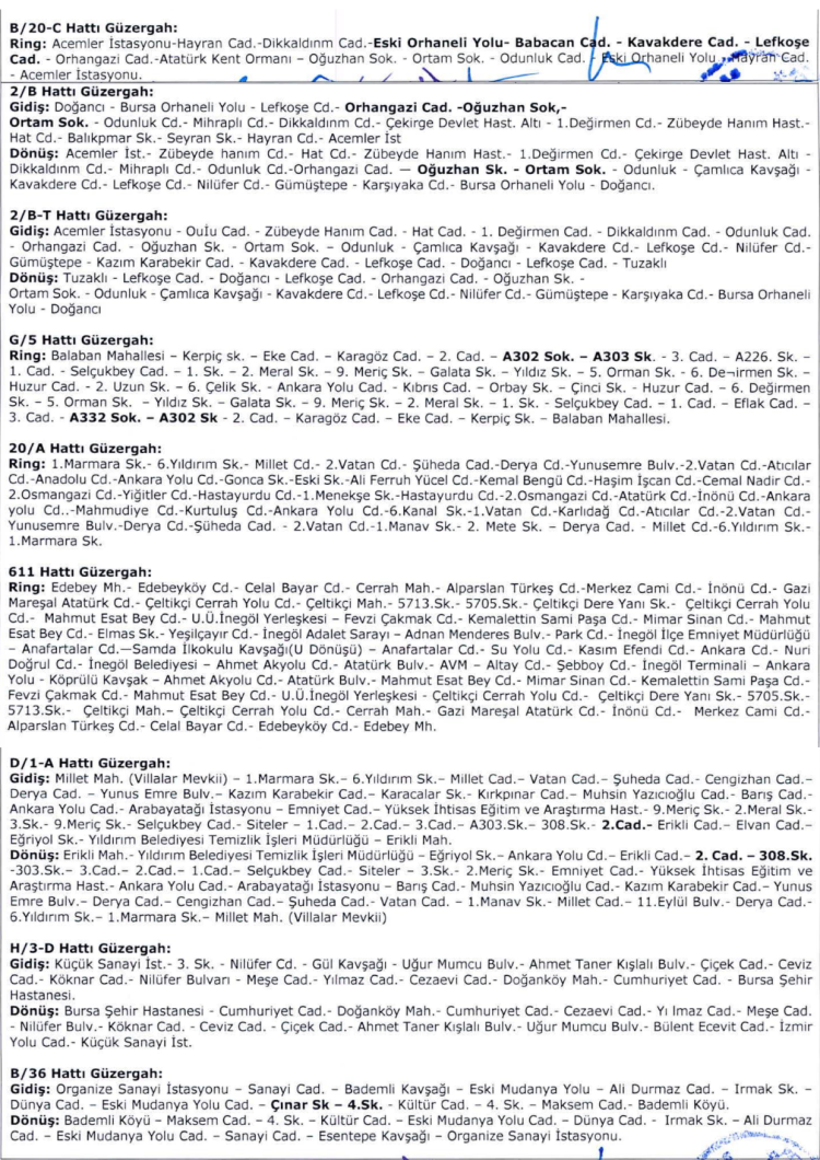 Bursa Ulaşım Koordinasyon Merkezi (UKOME) Kurulu’nda görüşülen Alt Komisyon raporu doğrultusunda, kent genelinde faaliyet gösteren 12 otobüs hattının güzergâhında değişikliğe gidildi. Karar kapsamında hatların, ekli listede belirtilen yeni güzergâhlarda hizmet vermesi uygun bulundu.