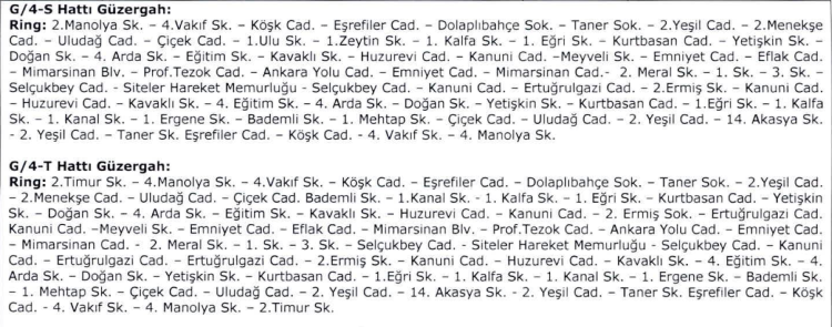 Hatların yeni güzergahları şöyle belirlendi: