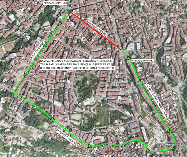 Çalışmalar nedeniyle 5 Mart Perşembe günü 08.00 ile 15.30 saatleri arasında cadde üzerindeki trafik akışı tek taraflı sağlanacak. Trafik, sırasıyla İpekçilik, Eşrefiler ve Şehit Asteğmen Okşan Altanay caddelerine yönlendirilecek.