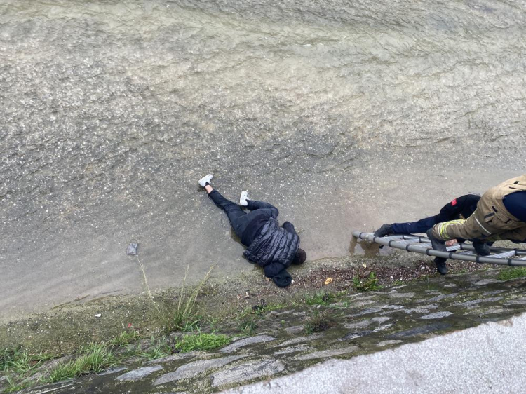 Bursa'nın Yıldırım ilçesinde dereye düşen genç adam, kalp masajıyla hayata döndürüldü.