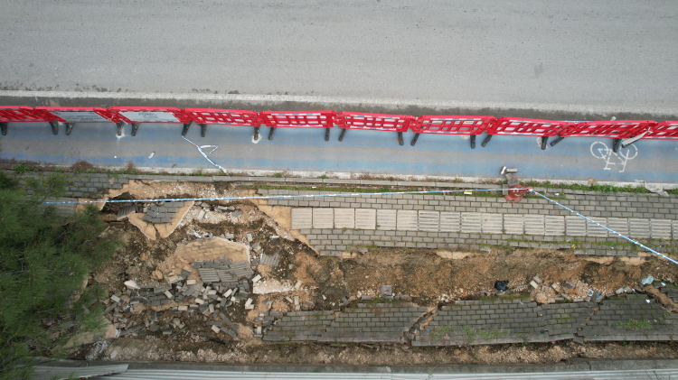 Bursa'nın Nilüfer ilçesine bağlı Ataevler Mahallesi'nde kentsel dönüşüm çalışması esnasında yola zarar verildi. Çökme yaşanırken, Nilüfer Belediyesi Ulaşım Hizmetleri Müdürlüğü ekipleri bölge güvenlik önlemi alarak muhtemel olayın önüne geçti.