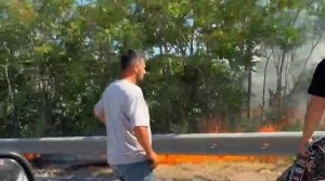 Bursa Şehir Hastanesi'nin karşısında bulunan alanda çıkan yangına yoldan geçen sürücüler, araçlarından çıkardıkları yangın söndürme tüpleriyle müdahale etmeye çalışıyor. Otoyol kenarına çıkan köylü çocuklar, yangına atmak için araçlardan su istiyor. İHA