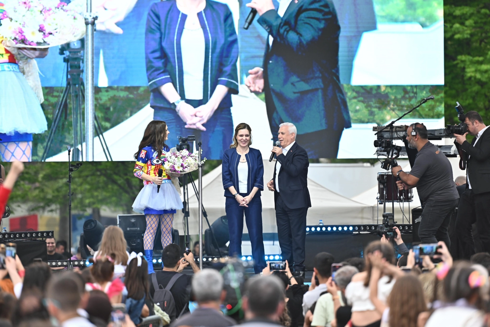 Bursa Büyükşehir Belediye Başkanı Mustafa Bozbey, konser sırasında sahneye çıkarak ünlü şarkıcı Nil Karaibrahimgil’e çiçek takdim etti. Dünya çocuklarının 23 Nisan Ulusal Egemenlik ve Çocuk Bayramı’nı kutlayan Başkan Bozbey, “Gülümseyen yüzleriyle bugün burada bir araya gelen sevgili çocuklar, bugün sizin bayramınız. Doyasıya eğlenmek hakkınız. Cumhuriyetimizin ve millî egemenliğimizin mimarı olan şehit ve gazilerimizi rahmet, minnet ve saygıyla anıyorum. Tüm çocuklar aynı dilde gülümser diyerek 23 Nisan Ulusal Egemenlik ve Çocuk Bayramı’nızı kutluyorum’’ dedi.