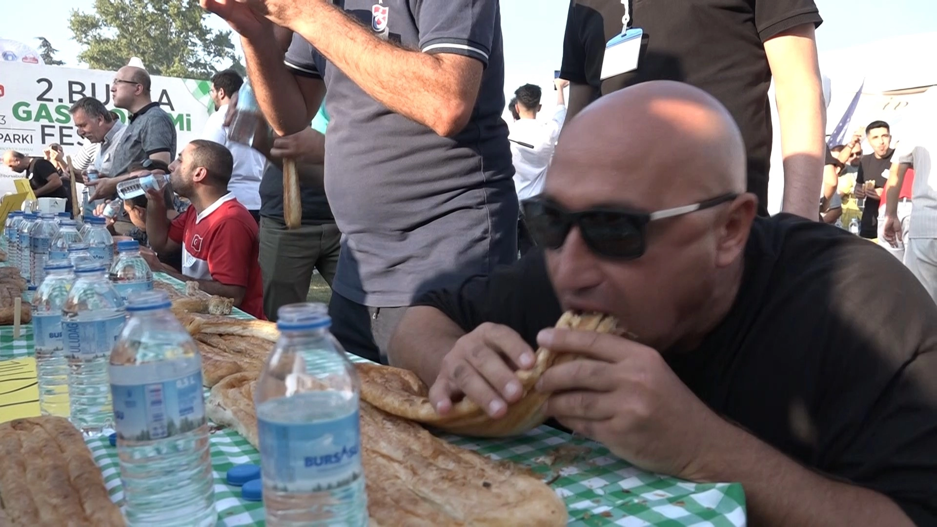 Bursa’da ikincisi düzenlenen Gastronomi Festivali’nde kol böreği yeme yarışması düzenlendi. 14 metre kol böreği yiyerek şampiyon olan Ali Kılıç, kazandığı 10 bin lira para ödülünün yarısını depremzedelere bağışladı.