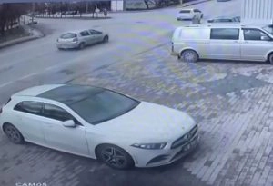 Dalgın sürücünün karıştığı kaza anı kameraya yansırken, kazada yaralanan olmadı.